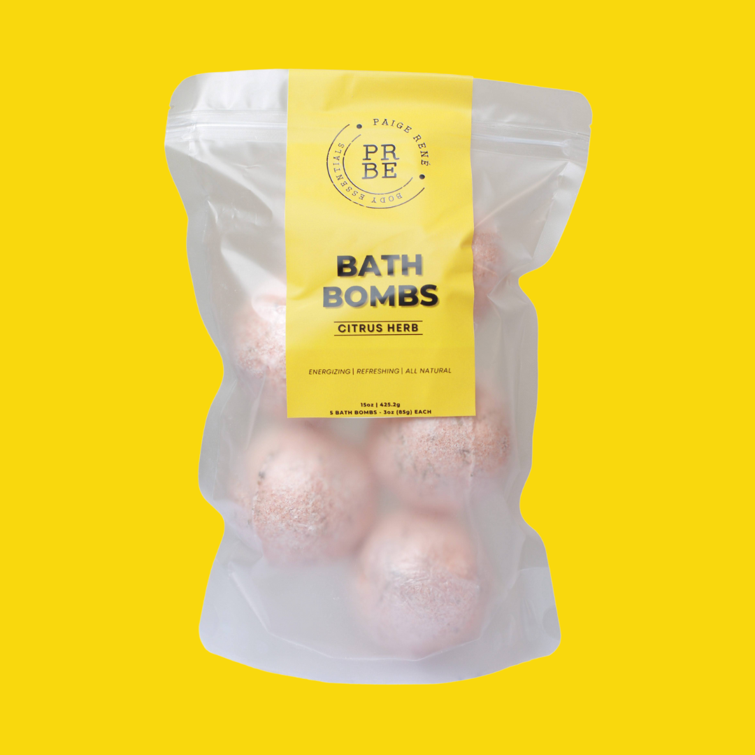 Citrus Herb - Baking Soda, Epsom Salt, Citric Acid, Decyl Glucoside, Orange, Bergamot & Eucalyptus Essential Oils, Dried Eucalyptus, Mineral Pigment